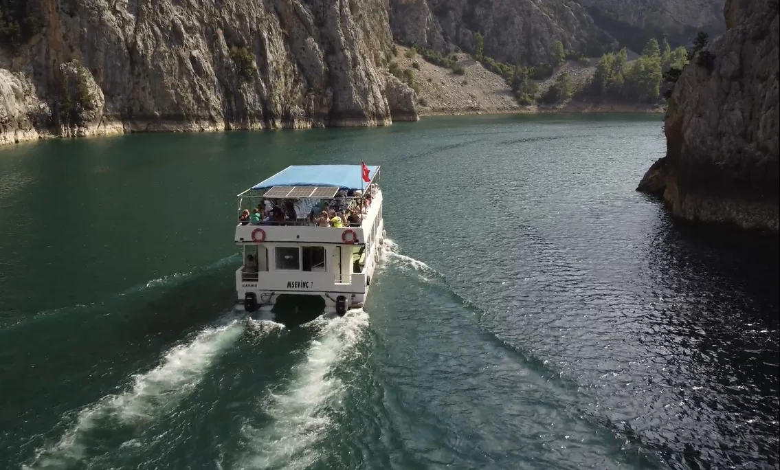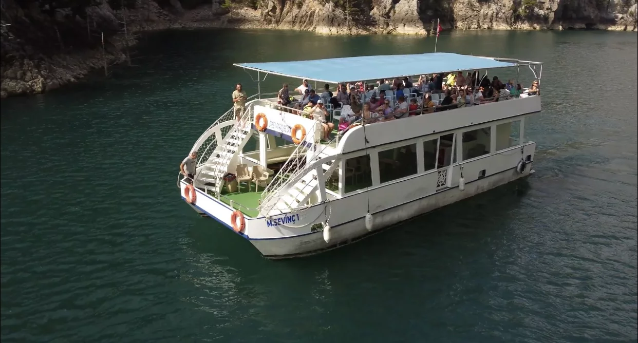 • Ankunft am Oymapınar Staudamm und Einschiffung: Wir erreichen das Gebiet der Oymapınar Staudamm Tour, das aus einer Höhe von etwa 1500 Metern atemberaubende Panoramablicke bietet. Hier gehen wir an Bord unseres komfortablen Bootes, das bereits auf uns wartet, und setzen die Segel in die geheimnisvollen Gewässer der Schlucht.
